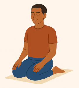 This is also referred to as the Zen pose after the Zen monks who practice it almost exclusively. This is not recommended for beginners. A cushion, folded blanket, or zen chair can be placed between the calves and thighs. Kneel on the floor and sit back on the heels. Each heel is positioned under its respective buttock.
